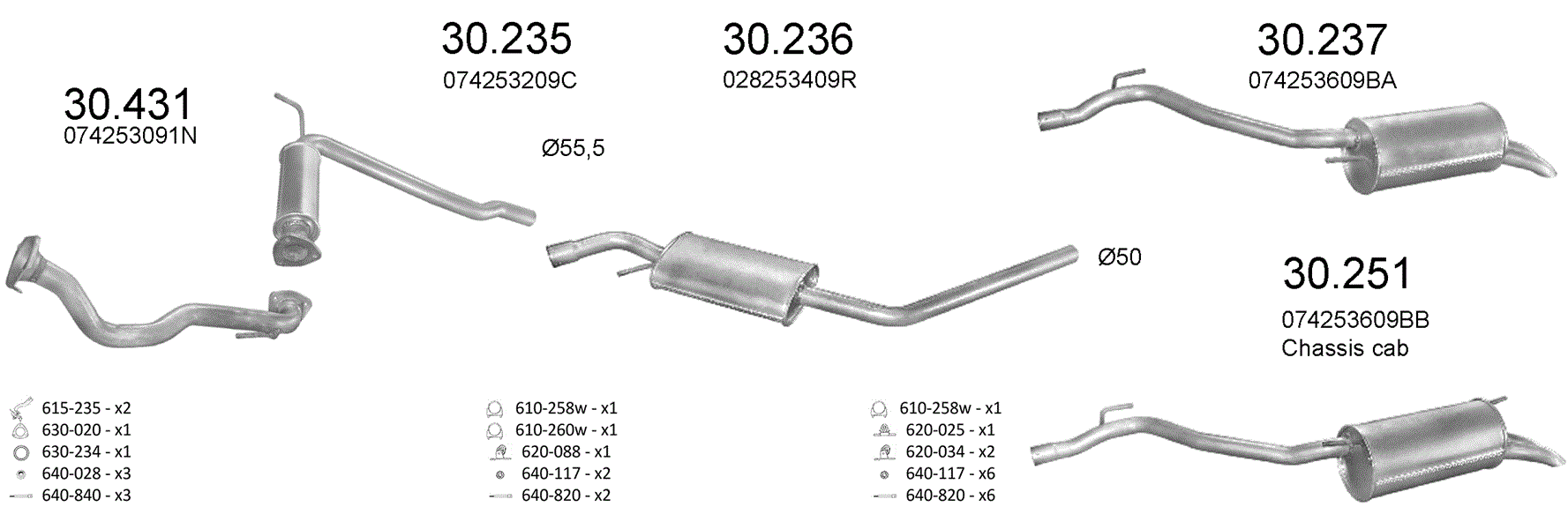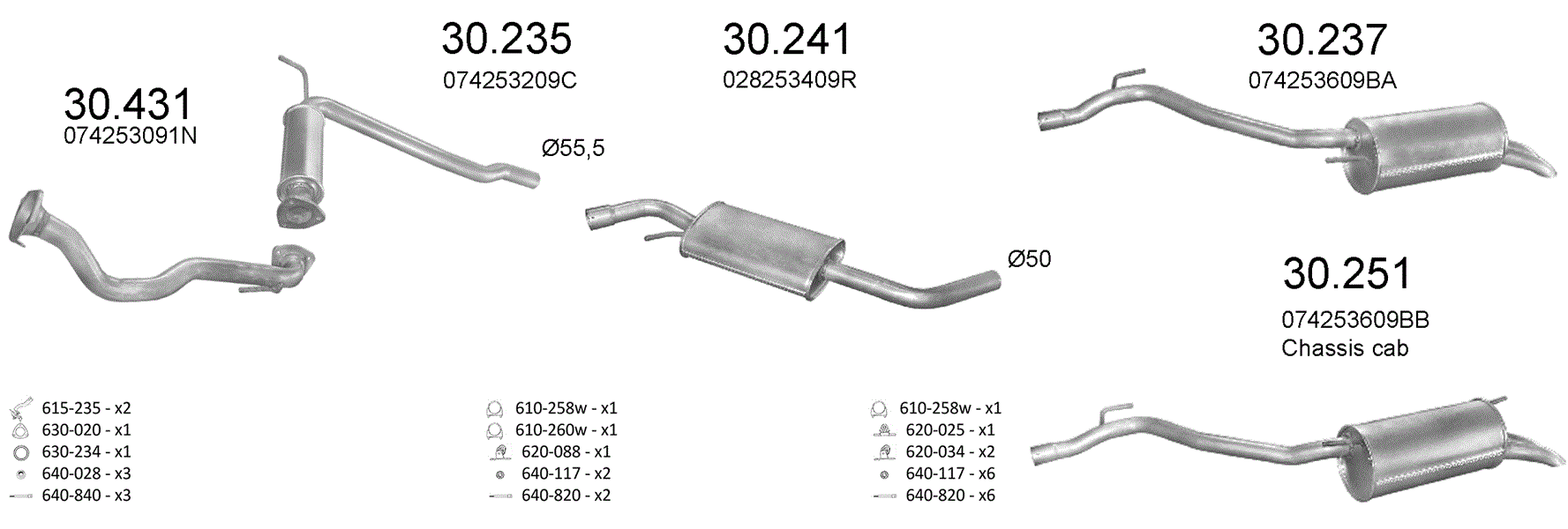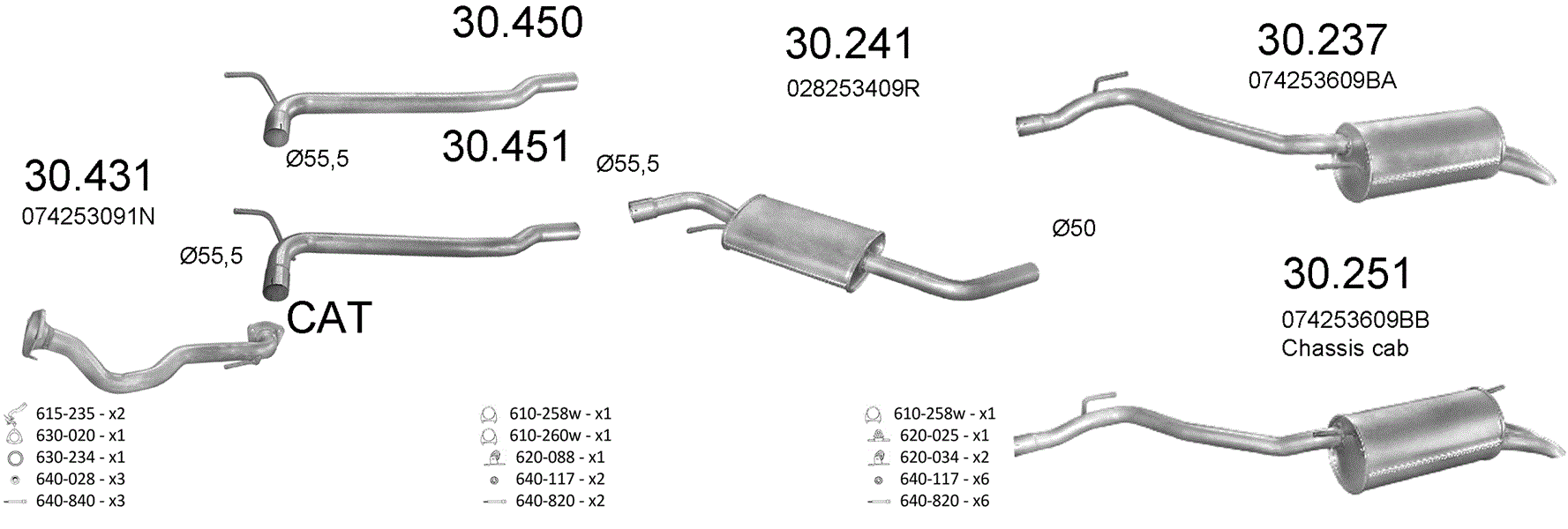 | VW TRANSPORTER IV 2.4 D | CHASSIS CAB | /1997 - 07/2003 | 2370ccm, 55kW | 75 | SWB 2920mm |